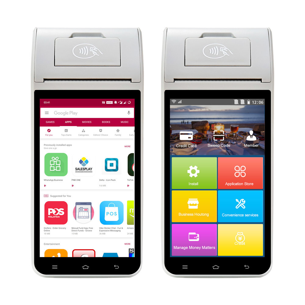 Z91 Android-is de zendtijd POS met printer, androïde 9,0 besturingssysteem, de aanraking van het 5,5 duimscherm, super lange reservebatterijcapaciteit